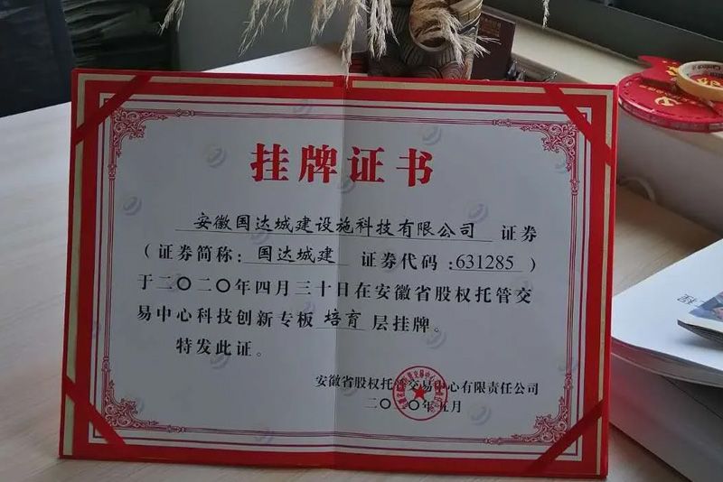 二零二零年四月我公司在安徽省股權托管中心科技創(chuàng)新專版培育層正式掛牌。
