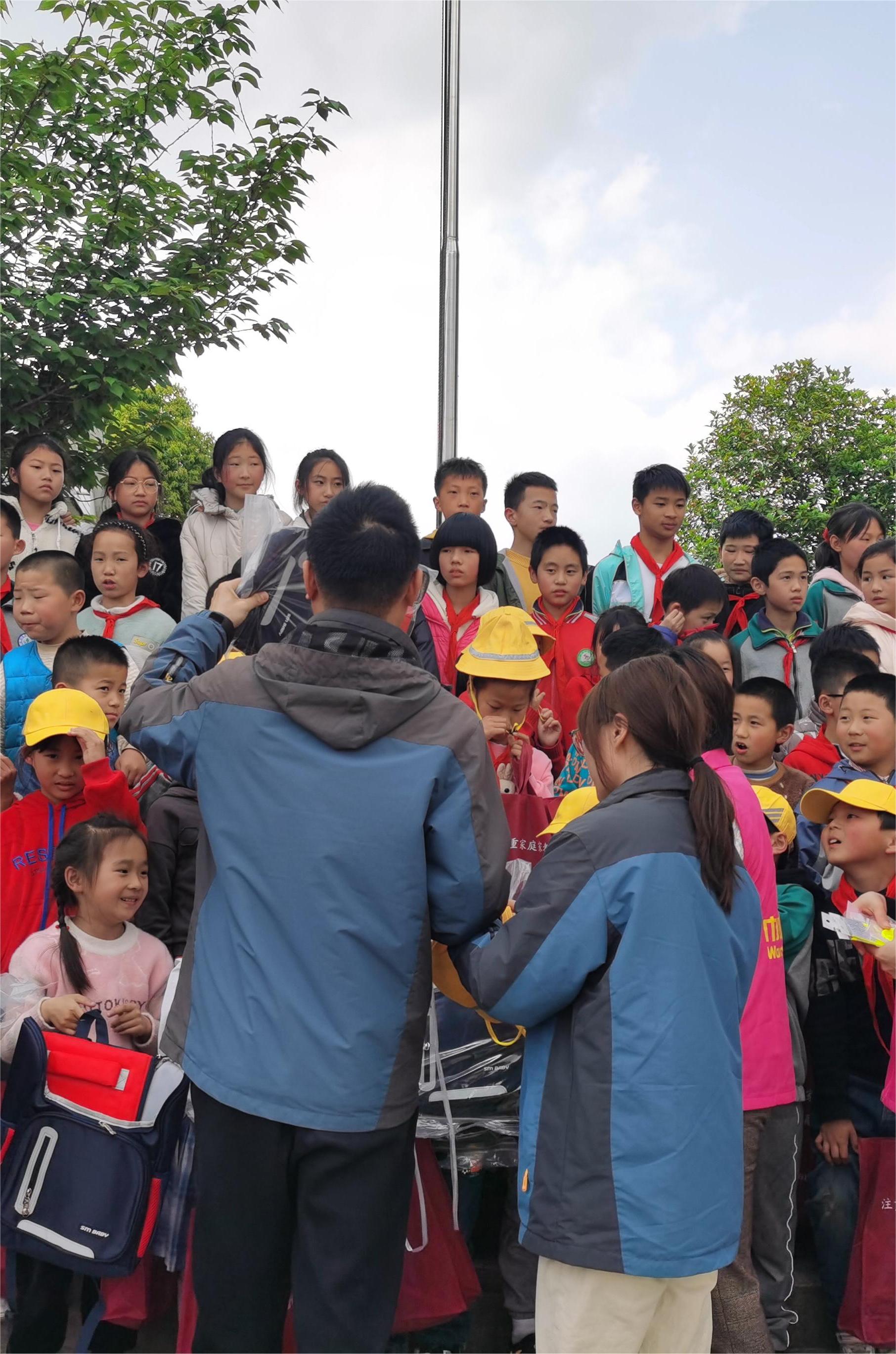 現(xiàn)場(chǎng)我公司志愿者為留守兒童發(fā)放書(shū)包、反光帽和反光掛件,為農(nóng)村學(xué)生在上學(xué)和回家的路上增添了一份安全保障。